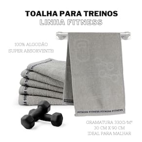 TOALHAS FITNESS PARA ACADEMIAConfeccionadas com 100% algodão com moderno barrado escrito “Fitness”, essas toalhas oferecem uma experiência de toque suave e agradável. A gramatura de 330g/m² e o fio 16/1 são indicadores de qualidade, garantindo a absorção e resistência ideais para enfrentar os desafios do seu treino.Estas toalhas não se limitam apenas à academia. São versáteis e podem ser utilizadas em diferentes contextos, como em práticas esportivas ao ar livre, durante aulas de yoga, ou até mesmo em viagens.Invista em seu conforto e desempenho, escolha as Toalhas Fitness e experimente a diferença!Quantidade de Peças e Medidas Aproximadas (Largura x Comprimento):6: Toalhas Para Academia 30cm x 90cmMaterial e Composição:100% algodãoGramatura 330g/m2Fio 16/1Informações Específicas:HipoalergênicoLavar antes de usar pela primeira vez para retirada de resíduos de fabricaçãoNão utilizar amaciantes nas primeiras lavadasNão usar alvejantesCores escuras devem ser lavadas separadamenteEvite lavar juntamente com tecidos abrasivos para evitar o surgimento de bolinhasInformações Gerais:Material visual ilustrativoPode haver alterações na tonalidade da cor da imagem do produto, devido a diferença de telas de visualização