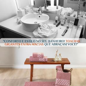 Imagine sair do banho e se envolver em toalhas que são tão macias e espessas, que mais parecem um abraço aconchegante. Esse jogo foi feito para quem ama o toque suave na pele e quer trazer um pouco do luxo dos hotéis 5 estrelas para o dia a dia. O acabamento impecável e os detalhes bordados fazem de cada peça uma verdadeira joia para o seu banheiro.