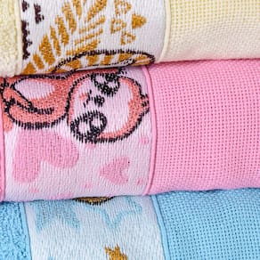 A Linha de Tolhas Infantil foi desenvolvida para proporcionar um toque macio e carrinho. Seu corpo possui desenhos jacquard em alto e baixo relevo que dão um visual super alegre e charmoso e ela possui barra com o tecido mais fechado, ideal para bordar o ponto cruz.