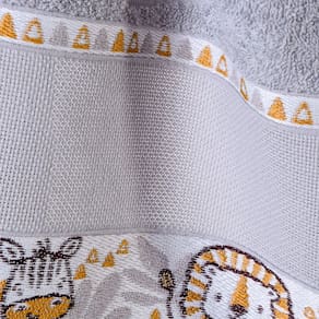 Kit Toalha de Banho e Rosto Infantil com Barra Ponto Cruz Cinza -
