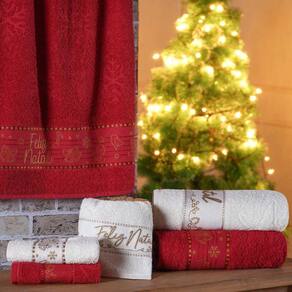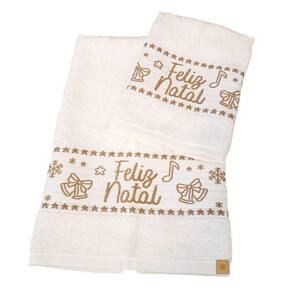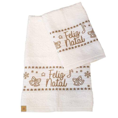 Encante o seu Natal com esse Kit de Toalhas de Mão e Rosto, ideal para ornar e decorar o seu Lavabo Social na Festividade de Natal. Possui um lindo bordado Natalino e detalhe escrivo "Feliz Natal", além de um tamanho perfeito, é super macia e feita de 100% algodão.