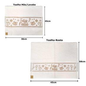 Kit Toalha Mão e Rosto Feliz Natal Lavabo 100% Algodão Macia
