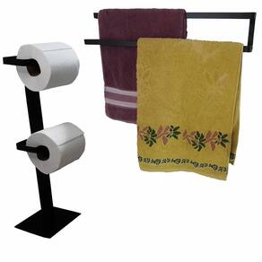 Kit Toalheiro Duplo Parede e Porta Papel Higiênico De Chão Área de aplicação - Banheiros/Lavabos. Ter um banheiro organizado traz leveza e praticidade para sua rotina. Para que o banheiro fique em ordem, é necessário o uso de alguns produtos, o porta papel higiênico e o porta toalhas duplo parede Porta Papel Higiênico De Chão. Acabamento - Pintura Eletrostática Epóxi. Cor - Preto Fosco. Medidas: Medida da base: 13x13cm. Altura Total: 50cm. Largura da Hastes do Papel Higiênico: 16cm Material da base - Aço maciço com tratamento anti-ferrugem, assim tem uma ótima estabilidade no momento do uso, sem tombar. Base com silicone embaixo para evitar atrito com o revestimento ou que escorregue. Porta Toalhas Duplo Parede Acabamento: Pintura Eletrostática Epóxi Cor - Preto Fosco. Material: Aço. Medidas: Comprimento: 60cm Altura: 5cm Profundidade Das Hastes: Menor 6cm / Maior 12cm Conteúdo Da Embalagem. 1 - Porta Papel Higiênico De Chão 1 - Porta Toalhas Duplo Parede + Kit De Instalação Garantia do fabricante - 12 meses. Ótima escolha para atender suas diferentes necessidades.Obs: Não acompanha itens de decoração. Marca: Belolar