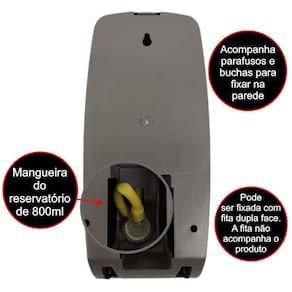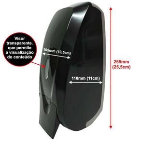 Dados técnicos: - constituído de plástico com alta resistência a impacto 100% reciclável. - processo de produção por injeção termoplástica. - sistema de fechamento exclusivo que dispensa chave. - sistema aceita abastecimento com refis ou reservatórios de sabonete líquido e álcool em gel. - utiliza sistema nacional de bico dosador de 80mm. - tecla aperte com limite de curso que garante eficiência de saída do sabonete com controle de quantidade. - espaço interno com todas as paredes revestidas, o que garante mais higiene evitando umidade e poeira. - visor transparente que permite a visualização do conteúdo, facilitando o abastecimento.