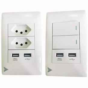 Descrição:O carregador tomada usb de parede foi feito para substituir os carregadores convencionais e eliminar as fontes grandes dos carregadores comuns, ótimo para backup ele sempre estará na sua parede, basta plugar o cabo.Serve para recarregar celulares entre outros aparelhos também, é fabricado com carregadores universais para servir em qualquer aparelho.Não corre o risco de danificar a bateria dos aparelhos pois os carregadores são de picos baixos sem forçar o carregamento, assim não tem o risco de estragar a bateria ou viciar, pode demorar mais tempo para carregar em alguns aparelhos, mas funcionam.A instalação é a da mesma forma que uma tomada de parede convencional , só ligar os fios da energia que vem da parede ou que estavam na tomada antiga que já funcionam.Especificações técnicas do produto Tensão de entrada: bivolt ac 110-250 v 50/60hz Corrente nominal das tomadas: 10a cada Com 2 portas usb Saída usb: 5v 2.1 amper Cor: branco Tamanho do painel: padrão universal Funciona para dois celulares simultaneamente. Tomada e interruptor completosConteudo da embalagem:1 tomada 3 pinos com saída usb1 interruptor com saída usbGarantia: Oferecemos garantia de 90 dias para todos os produtos. Havendo qualquer anormalidade com a peça durante esse período, nos prontificaremos a substituí-la o quanto antes, basta o cliente entrar em contato com nossa central de atendimento. Foto ilustrativa Não nos responsabilizamos pelo mau uso do produto.