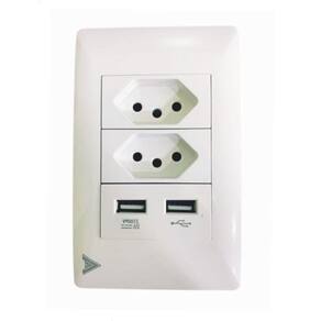 Kit Tomada 3 Pinos + Interruptor Duplo Bivolt C 2 Saida Usb