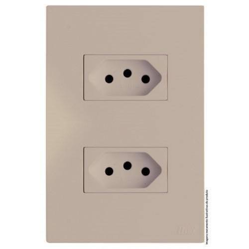 CJ TOMADA DUPLA 10A 4X2 - RECTA AREIA SATIN FOSCO - BRS12176-2AR