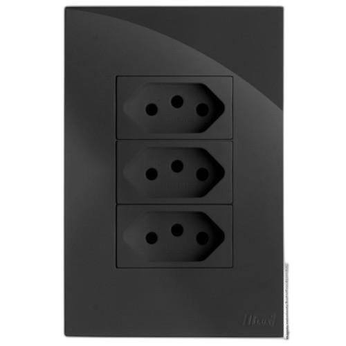 Cj tomada tripla 10a 4x2 - recta grafite gloss - brg11217-8gf
