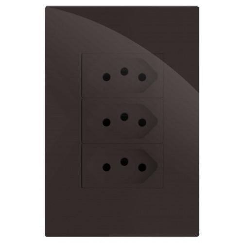 Cj tomada tripla 20a 4x2 - recta chocolate gloss - brg11232-1ch