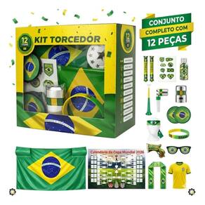 Mostre todo o seu orgulho pelo Brasil com o Kit Torcedor Completo, perfeito para acompanhar cada jogo com muita energia e animação. Ideal para torcer com amigos, família ou em eventos, esse kit reúne tudo o que você precisa para entrar no clima da Copa do Mundo. Com diversos acessórios temáticos, você poderá vibrar, celebrar e apoiar a seleção brasileira com estilo e intensidade. Prático e completo, é a escolha ideal para quem quer transformar qualquer momento em uma verdadeira festa verde e amarela. Seja em casa, no estádio ou em encontros com amigos, este kit garante diversão e muita torcida em todos os jogos.