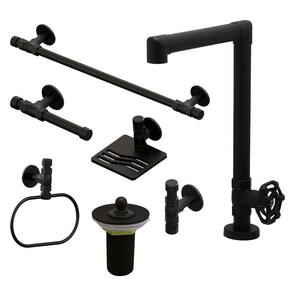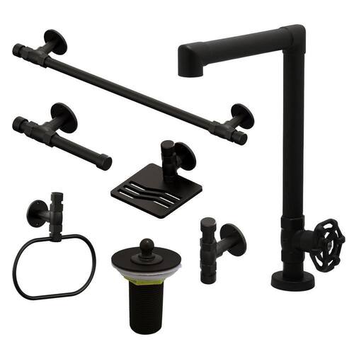 Kit torneira industrial rustica lavatório banheiro 1/4v + cabide + porta toalha barra + porta toalha argola + saboneteira + papeleira + válvula preto fosco luxoNa embalagem contém:01 torneira lavatório industrial rustico01 cabide industrial rustico01 porta toalha barra industrial rustico01 porta toalha argola industrial rustico01 saboneteira industrial rustico01 papeleira industrial rustico01 válvula industrial rusticoO estilo industrial é indicado para quem busca uma decoração mais moderna e rústica. Tem como inspiração as estruturas dos galpões, com texturas combinadas de tijolos, tubulação aparente, madeira, cano, metal e concreto.A cor dos nossos produtos é resultado de um processo eletroquímico de elevada tecnologia e qualidade.Dados técnicos torneira:- garantia fabricante: 5 anos- shophidraulica- posição de instalação: mesa- bitola: 1/2- pressão mín.: 4 m.C.A- pressão máx.: 40 m.C.A- vazão mín.: 4 l/m- vazão máx.: 12 l/m- temperatura máx.: 70 c- mecanismo: cerâmico 1/4 de volta- composição: corpo - metal / volante - metal / canopla - metal- ciclo de abertura: 1 estágio- tubo: bica móvel 360Dados técnicos válvula:-produzida em metal de alta qualidade-porca de aperto em metal-acompanha tampão em abs-possui anel de vedação, que proporcionam melhor ajuste-diâmetro do encaixe na pia: 5,6 centímetros medida superior -diâmetro saída: 7/8-saída para engate de sifão de 7/8-produto de fácil instalação- garantia de 5 anos Marca: Shophidraulica