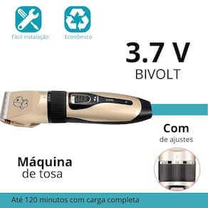 Descrição do Anúncio: Conteúdo da Embalagem: 1x Máquina de Tosa com bateria embutida 4x Pentes de Nível 3mm, 6mm, 9mm, 12mm 1x Cabo de Carregamento USB 1x Escova de Limpeza 1x Manual do Usuário 1x Lubrificante Características: Design sem Fio: Equipamento com bateria recarregável de 1200 mAh, para uso sem conexão com cabos. Baixo Ruído: Operação silenciosa abaixo de 50 dB para conforto dos pets. Segurança e Precisão: Lâmina de liga de titânio para cuidados com a pele dos animais. Pente Ajustável: 4 pentes de proteção para cortes de cabelos seguros e precisos. Fácil Limpeza: Lâmina removível para e limpeza facilitadas Especificações: Carregador: Bivolt Saída do Adaptador: AC 3.7V 1200mA Entrada do Adaptador: 110V-240 V 50/60Hz Tempo de Funcionamento: até 120 minutos com carga completa Tempo de carregamento: aproximadamente 5 horas Tensão de Trabalho: 3.7V Tamanho da Máquina: 185x45mm comprimento x Largura Principais perguntas sobre o produto e Resposta: Quanto tempo dura a bateria após um carregamento completo A bateria de 1200mAh permite até de 120 minutos de uso contínuo, após um carregamento de 3-5 horas. É fácil limpar a máquina após o uso Sim, a Lâmina é removível para facilitar a limpeza e a manutenção da máquina. As lâminas são seguras para a pele sensível de estimação Sim, a lâmina de liga de titânio proporciona um corte preciso sem puxar os pelos ou irritar a pele dos pets. Marca: Não Informado