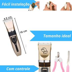 Kit tosa pet completo - máquina, lixa e alicate portátil Descrição do anúncio: Que tal cuidar dos pelos e do visual do seu melhor amigo no conforto de casa A máquina de tosa pet elétrica é a escolha ideal para garantir que seu animal de estimação esteja sempre bem cuidado. Com um design moderno e prático, este equipamento permite realizar a tosa de maneira eficiente e confortável, mesmo para os pets mais sensíveis. O motor potente e silencioso, combinado com uma lâmina de alta precisão, proporciona cortes perfeitos sem irritar a pele do animal. Além disso, a máquina é recarregável e pode ser utilizada sem fio, oferecendo maior liberdade de movimento. Conteúdo da embalagem: 01 máquina de tosa sem fio 01 cabo de carregamento usb 04 pentes de tosa 3mm, 6mm, 9mm, 12mm 01 escovinha para limpeza 01 cortador de unha 01 óleo lubrificante 01 lima de unha 01 pente de aço 01 tesoura 01 manual do usuário Características: Lâmina de alta potência para uso contínuo 4 pentes de corte com alturas diferentes 3mm, 6mm, 9mm, 12mm Motor com longa duração e baixo ruído Possibilidade de uso sem fio, com bateria recarregável de 1200mah Cabo de alimentação longo para maior praticidade Nível de acabamento ajustável Design ergonômico e leve, facilitando o manuseio Material da máquina: plástico, resina abc e aço inoxidável Lâmina de titanium e cerâmica para cortes precisos e sem alergia Recarregável com carregador bivolt 110v/220v Especificações: Potência: 3w / 5w Pentes de corte: 3mm, 6mm, 9mm, 12mm Tempo de carregamento: 3-5 horas Duração de uso: 1-2 horas Tensão de voltagem: 3,7v Velocidade: 8200 rpm Dimensões: 185mm x 45mm comprimento x largura Peso: aproximadamente 0,240 kg Material da máquina: plástico, resina abc e aço inox Material da lâmina: titanium frontal e cerâmica traseira Principais perguntas sobre o produto e respostas: A máquina pode ser Utilizado em cães e gatos Sim, a máquina de tosa pet elétrica é adequada para cães e gatos de diversos portes. qual é o tempo de carregamento da máquina O tempo de carregamento varia entre 3 a 5 horas, dependendo do modelo. A máquina faz muito barulho Não, a máquina possui um motor silencioso, com operação abaixo de 50 db, ideal para animais sensíveis ao ruído. A lâmina pode causar alergia no meu pet Não, a lâmina é feita de materiais hipoalergênicos como titanium e cerâmica, que são seguros para a pele dos animais. A máquina pode ser Utilizado enquanto está carregando Sim, a máquina pode ser utilizada tanto sem fio quanto conectada ao cabo de alimentação. Como faço a limpeza da máquina A lâmina é removível e pode ser facilmente limpa com a escovinha fornecida. O corpo da máquina não é lavável. Quais são os tamanhos dos pentes de corte incluídos A máquina vem com 4 pentes de corte: 3mm, 6mm, 9mm e 12mm. A máquina é adequada para Sim, o motor e as lâminas de alta potência fazem dela uma excelente opção tanto para uso doméstico quanto para