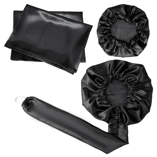 Kit Touca Difusora + 1 Touca + 2 Fronhas Cetim Seda Preta