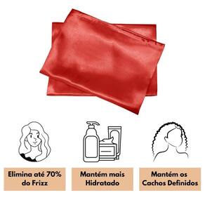 Kit Touca Difusora + 1 Touca + 2 Fronhas Cetim Seda Vermelha