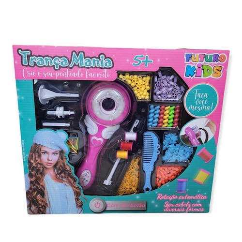 Kit Trançador De Cabelo Trança Mania PenteadosUma ótima ferramenta para festas de garotas, você pode usar diferentes cordas coloridas e contas para projetar looks elegantes para você e seus amigos. É divertido de usar. Você pode projetar seu penteado com cordas coloridas e contas em vez de brinquedos. Fácil de usar. Sistema de um botão, basta pressionar o botão para girar automaticamente e rapidamente o cabelo.Trança Mania - Material: Plástico, tecido e elástico - Dimensões: 34 cm x 10 cm - Utiliza: 2 pilhas AA não inclusa - Cores: Rosa - Contém: 1 Unidade com diversos utensíliosSegurança: 003589/2021. INMETRO