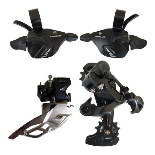 Kit Transmissão Absolute 20V Alavanca Passador 2X10V Câmbios Composição do kit/combo deste anúncio: - alavanca de câmbio 10v absolute a7 preta com cabos par - câmbio traseiro absolute 10v a7 cage longo preto - câmbio dianteiro absolute a7 dual pull 2x10v