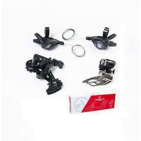 Kit Transmissão Absolute 20V Alavanca Passador 2X10V Câmbios Composição do kit/combo deste anúncio: - alavanca de câmbio 10v absolute a7 preta com cabos par - câmbio traseiro absolute 10v a7 cage longo preto - câmbio dianteiro absolute a7 dual pull 2x10v