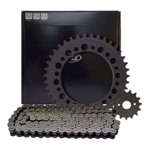Para as motos rodarem tranquilas e apreciarem cada quilômetro, a VAZ criou o Kit Relação Transmissão que possui uma presença maior de carbono, sendo mais resistente e seguro, ele conta com toda a durabilidade que você precisa para rodar tranquilo e sem problemas. Ele é composto por uma coroa, um pinhão e uma corrente.