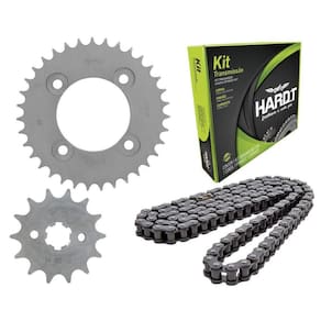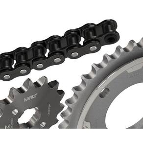 Produzidas para atender os mais exigentes consumidores os kits transmissão Hardt prezampela qualidade e se destacam pela sua performance resistência e durabilidade.Reconhecida pelos motociclistas, como um produto de “Qualidade Premium”. os kits transmissão Hardt são produzidos em aço 1045, certificado conforme normasrnacionais, (SAE). A coroa e o pinhão recebem tratamento térmico por indução, o quegarante melhor defesa contra o desgaste dos dentes e preserva a integridade do núcleo nos impactos. A corrente reforçada, com tratamento especial na cor preta complementa aqualidade do kit transmissão Hardt. Certificada pelo Inmetro os kits Hardt atendem todosos requisitos para atingir ou superar o nível de qualidade das peças originais.