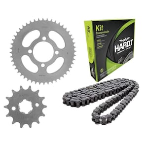 Produzidas para atender os mais exigentes consumidores os kits transmissão Hardt prezampela qualidade e se destacam pela sua performance resistência e durabilidade.Reconhecida pelos motociclistas, como um produto de “Qualidade Premium”. os kits transmissão Hardt são produzidos em aço 1045, certificado conforme normasrnacionais, (SAE). A coroa e o pinhão recebem tratamento térmico por indução, o quegarante melhor defesa contra o desgaste dos dentes e preserva a integridade do núcleo nos impactos. A corrente reforçada, com tratamento especial na cor preta complementa aqualidade do kit transmissão Hardt. Certificada pelo Inmetro os kits Hardt atendem todosos requisitos para atingir ou superar o nível de qualidade das peças originais.