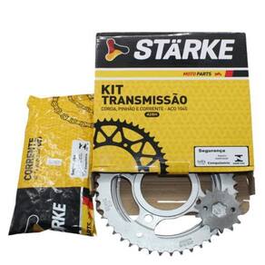 Kit de transmissão para motos em aço 1045 coroa, pinhao e corrente sem retentor - Starke.