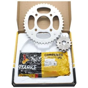 Kit de transmissão para motos em aço 1045 coroa, pinhao e corrente com retentor - Starke.