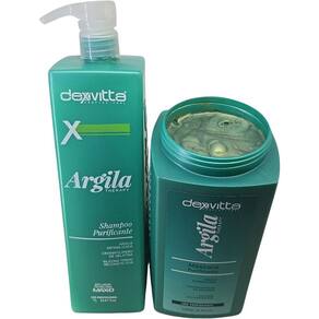O shampoo argila therapy dexvitta foi desenvolvida com exclusiva formulação italiana para todos os tipos de cabelos. As propriedades da argila estabilizada fortalecem as fibras capilares, diminuem a queda, auxiliam no combate a oleosidade e promovem hidratação nos cabelos. Sua fórmula contém uma diversidade de oligoelementos que associados ao crosspolimero de gelatina e ao silicone termo reconstrutor garantem efeito reconstrutor, nutritivo e hidratante aos cabelos. Modo de usar: aplicar sobre os cabelos úmidos e massagear suavemente o couro cabeludo com movimentos circulares. Enxaguar em abundância e repetir a operação. Deixar em pausa por 3 minutos na segunda aplicação. Enxaguar abundantemente. Precauções: uso externo. Não ingerir. Manter fora do alcance de crianças. Em caso de irritação, suspender o uso. No caso de contato com os olhos, lavar com água === A máscara argila therapy dexvitta foi desenvolvida com exclusiva formulação italiana para todos os tipos de cabelos. As propriedades da argila estabilizada fortalecem as fibras capilares, diminuem a queda, auxiliam no combate a oleosidade e promovem hidratação nos cabelos. Sua fórmula contém uma diversidade de oligoelementos que associados ao crosspolimero de gelatina e ao silicone termo reconstrutor garantem efeito reconstrutor, nutritivo e hidratante aos cabelos. Modo de usar: após lavar os cabelos com o shampoo argila therapy aplique a máscara argila therapy em toda a extensão dos fios, enluvando cuidadosamente mecha a mecha. Deixe agir por 10 minutos e enxague em abundância, finalize como desejar Marca: Não Informado Ean: 7893264532522