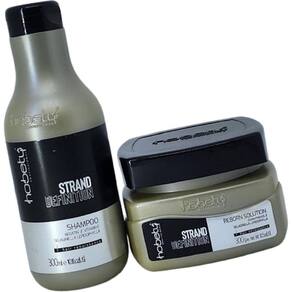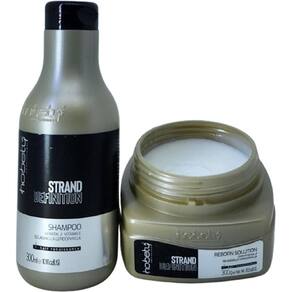 Kit : 01 Shampoo 300ml 01 Mascara 300g O Shampoo Strand Definition da HOBETY , é o tratamento perfeito para cabelos com raízes oleosas, para próteses capilares, mega hair e danos mecânicos, como secadore e piastra. Com sua textura diferenciada, reduzindo a fricção com o fio, associado aos ativos naturais, promove a limpeza profunda da raiz as pontas, conferindo proteção contra agentes externos, como a poluição e microorganismos bactérias e fungos . MODO DE USAR: Com os cabelos úmidos, aplicar em toda a extensão dos fios, em movimentos circulares. Deixe agir por 3 minutos, enxague e repita a operação. Para a continuidade do tratamento, utilizar o Reborn Solution Strand Definition. ======= O Rebom Solution Strand Definition da HOBETY , é o segundo passo do tratamento aos cabelos com raízes oleosas, proteses anpilares, mega hair e danos mecânicos. A solução condicionadora com seu sensorial diferenciado, hidrata e nutre as cabelos, recuperando sua vitalidade e força, protegendo os fios contra agentes externos, como a poluição e microorganismos bactérias e fungos . MODO DE USAR: Retire o excesso de água dos fios com o auxílio de uma toalha e aplique Rebom Solution Strand Definition no comprimento e pontas. Deixe agir por 5 minutos, emulsione e enxague. PRECAUÇÕES: Uso externo. Não ingerir. Manter fora do alcance de crianças. Em caso de imitação, suspender o uso. Em caso de contato com os olhos, lavar com agua.