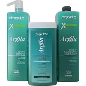 O Shampoo Argila Therapy Dexvitta foi desenvolvida com exclusiva formulação italiana para todos os tipos de cabelos. As propriedades da Argila Estabilizada fortalecem as fibras capilares, diminuem a queda, auxiliam no combate a oleosidade e promovem hidratação nos cabelos. Sua fórmula contém uma diversidade de oligoelementos que associados ao Crosspolimero de Gelatina e ao Silicone Termo Reconstrutor garantem efeito reconstrutor, nutritivo e hidratante aos cabelos. MODO DE USAR: Aplicar sobre os cabelos úmidos e massagear suavemente o couro cabeludo com movimentos circulares. Enxaguar em abundância e repetir a operação. Deixar em pausa por 3 minutos na segunda aplicação. Enxaguar abundantemente. PRECAUÇÕES: Uso externo. Não ingerir. Manter fora do alcance de crianças. Em caso de irritação, suspender o uso. No caso de contato com os olhos, lavar com água ===================================================== A Emulsão Reconstrutora Argila Therapy Dexvitta foi desenvolvida com exclusiva formulação italiana para todos os tipos de cabelos. As propriedades da Argila Estabilizada fortalecem as fibras capilares, diminuem a queda, auxiliam no combate a oleosidade e promovem hidratação nos cabelos. Sua fórmula contém uma diversidade de oligoelementos que associados ao Crosspolimero de Gelatina e ao Silicone Termo Reconstrutor garantem efeito reconstrutor, nutritivo e hidratante aos cabelos. ======================================================== A Máscara Argila Therapy Dexvitta foi desenvolvida com exclusiva formulação italiana para todos os tipos de cabelos. As propriedades da Argila Estabilizada fortalecem as fibras capilares, diminuem a queda, auxiliam no combate a oleosidade e promovem hidratação nos cabelos. Sua fórmula contém uma diversidade de oligoelementos que associados ao Crosspolimero de Gelatina e ao Silicone Termo Reconstrutor garantem efeito reconstrutor, nutritivo e hidratante aos cabelos. MODO DE USAR: Após lavar os cabelos com o Shampoo Argila Therapy aplique a Máscara Argila Therapy em toda a extensão dos fios, enluvando cuidadosamente mecha a mecha. Deixe agir por 10 minutos e enxague em abundância, Finalize como desejar Marca: Não Informado