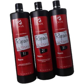 Repair active passo 1 Shampoo S.O.S. Treatment Composto de omega active 3d da proteina da cacau maçã + proteina da soja. Indicação: para cabelos rebeldes, indisciplinados e desalinhados. Resultado: cabelos lisos protegidos contra a umidade, redução de frizz e brilho3d. O shampoo repair active foi desenvolvido com uma poderosa e exclusiva fórmula que combina proteina da soja, responsável pelo selamento das cutículas abertas e danificadas possui poderosa ação hidratante, amaciante e nutritiva proporcionada pela de cacau, aliada a ativos com propriedade de proteção e restauração. É um sistema inovador que cria uma superfície suave e sedosa sobre os cabelos, mantendo as fibras capilares e fios rebeldes mais alinhados, brilhantes e disciplinados. Promove uma limpeza suave do couro cabeludo para o inicio do processo de alinhamento dos fios e alisamento da textura. Para ter cabelos ainda mais lisos e disciplinados, utilize outros produtos da linha cavier cosmeticos. Modo de usar: com os cabelos úmidos, aplique o shampoo repair active massageie até formar espuma abundante enxague e repita a operação. Em seguida aplique o reconstrutor repair active. === Repair active passo 2 Reconstrutor S.O.S. Treatment Elimina o frizz. Amaciante e ultra hidratante. Sem adição de corantes, possui ação pós progressiva, pos quimica indicação: cabelos transformados quimicamente resultado: cria um filme protetor anti umidade. Proporciona brilho e maciez de longa duração. O reconstrutor repair active foi desenvolvido a partir de um complexo reconstrutor. queratina, creatina, de cacau e óleo de abacate . Possui filtro solar e silicones especiais auxilia na reconstrução dos fios com aspecto poroso e quebradiço, reduzindo as pontas duplas, eliminando o frizz e revestindo a fibra com um escudo anti umidade de longa duração. Devolve o aspecto natural, promove maciez e brilho 3d aos cabelos. Modo de usar: aplique nos cabelos úmidos e higienizados uma pequena quantidade do comprimento as pontas. Penteie não enxágue . Se desejar, em seguida, inicie processo de escova ou prancha. === Repair active passo 3 Mascara S.O.S. Treatment Produto cosmético. Mascara condicionante repair active é o terceiro passo do processo da escova progressiva e outras químicas de transformação. Sua fórmula sem sal e com ph baixo, nutre e hidrata profundamente os cabelos, uniformizando estrutura cuticular e mantendo o efeito liso da escova progressiva por muito mais tempo. Desenvolvida especialmente com omegaactive 3d da proteínada de cacau e nutrientes vitais para a restruturação completa dos cabelos alisados, escovados, fragilizados por tinturas, relaxamentos e outros processo químicos. Age diretamente na fibra capilar, devolvendo aos fios brilho intenso e textura suave e macia, prolonga o efeito liso, tratando completamente os fios. Modo de usar: deixe o cabelo voltar à temperatura ambiente. Enxágue bem com água em abundância. Aplique a máscara condicionante repair active, massagens intensivamente e aguarde 3 minutos. Enxágue. Finalize como desejar.