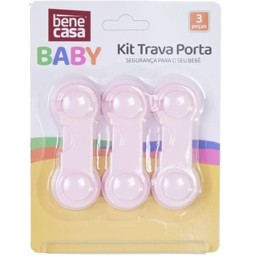 Kit Trava Porta 3 Peças para Bebês e Crianças Rosa -
