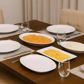 Kit Travessa Melamina Branca Oval 45x24cm Retangular 35x20cm Wolff Cozinha Bandeja Servir.
