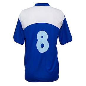 Numeração seguida do 2 ao 11 e 13 ao 18 nas costas das camisas, calção liso sem numeração.