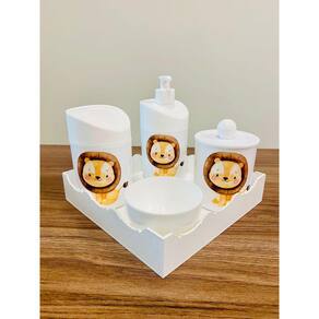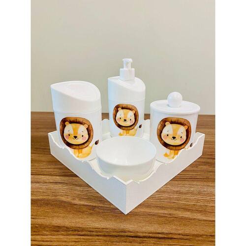 Kit Organizador para bebê c/bandeja em MDF. Cor do Pote: BRANCO PADRÃO Tampas: BRANCO MATERIAL DOS POTES: ACRÍLICO MATERIAL DA BANDEJA: MDF Kit acompanha: - 1 bandeja de madeira em MDF. - 1 porta sabonete / álcool gel - 1 molheira - 1 porta algodão - 1 porta cotonete MEDIDAS DA BANDEJA EM MDF: Diâmetro: 19,5x19 cm Altura: 5x8cm MEDIDA DOS POTES: Porta algodão/cotonete: 8x10,5 cm Porta sabonete líquido: 12x21 cm Molheira: 8x5 cm Marca: Doya Kids