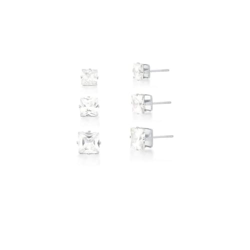 Kit Três Pares de Brincos Quadrados Decrescentes em Aço. semi Joia linda para fazer várias combinações. Adquira o seu e arrase