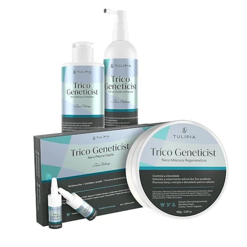 Kit Trico Geneticist: A Revolução Capilar em Parceria com Taís Pedroso O Kit Trico Geneticist é a solução completa e inovadora para combater a queda capilar e promover o crescimento de fios fortes, densos e saudáveis. Desenvolvido em parceria com a renomada especialista Taís Pedroso, esta linha de dermocosméticos utiliza o poder da nanotecnologia e uma combinação de 25 princípios ativos para uma transformação capilar profunda. O kit inclui quatro produtos essenciais: Trico Geneticist Nano Plasma Capilar 5 ampolas de 4ml : Monodoses concentradas que aceleram o crescimento capilar, previnem a queda e promovem a regeneração, graças a ativos como Redensyl e Fatores de Crescimento. Trico Geneticist Nano Máscara Regeneradora 200g : Desenvolvida para comprimento e pontas, esta máscara hidrata intensamente, repara danos e proporciona brilho, sedosidade e resistência aos fios com Óleo de Jojoba, Aminoácidos, Ceramidas e Ácido Hialurônico. Trico Geneticist Nano Loção Capilar Antiqueda 110ml : Uma infusão de ativos fortificantes como Redensyl, Kopexyl e Fatores de Crescimento que fortalecem o cabelo, revertem a queda e reativam o ciclo de crescimento capilar, resultando em fios mais densos e saudáveis. Trico Geneticist Nano Shampoo Esfoliante 250ml : Realiza um peeling no couro cabeludo com Ácido Salicílico e Cristais de Quartzo, eliminando oleosidade e desobstruindo folículos. Enriquecido com células-tronco da Maçã Suíça, reequilibra o couro cabeludo e estimula o crescimento. Benefícios Abrangentes: Os produtos do kit atuam sinergicamente para oferecer múltiplos benefícios: Combate e Prevenção da Queda: Fortalece a fixação dos fios e reverte o processo de queda. Aceleração do Crescimento: Ativa o ciclo de crescimento capilar para fios mais longos e volumosos. Densidade e Preenchimento: Aumenta a densidade da fibra capilar, tornando os cabelos mais cheios. Reparação e Regeneração: Recupera fios danificados, proporcionando maciez, brilho e vitalidade. Saúde do Couro Cabeludo: Equilibra a oleosidade, desobstrui folículos e melhora a microcirculação, criando um ambiente ideal para o crescimento capilar. Ação Antienvelhecimento: Protege os fios e o couro cabeludo contra o envelhecimento precoce. Modos de Uso: O kit pode ser utilizado por profissionais para Microagulhamento capilar com o Nano Plasma Capilar e para uso contínuo em Terapia capilar antiqueda bio-regenerativa, envolvendo higienização, aplicação de tônico e máscara. É fundamental realizar um teste de alergenicidade Antes do primeiro uso. Com o Kit Trico Geneticist, você tem acesso a um tratamento de ponta que oferece resultados visíveis e duradouros, devolvendo a saúde e a beleza aos seus cabelos.