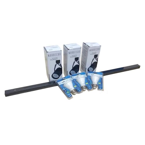 Kit Trilho Eletrificado 1M 3 Spot + 3 Lampadas Par20 3000KO TRILHO 3 SPOTS 360 graus é o produto ideal para quem procura uma iluminação moderna e funcional. Este possui um trilho de 1 metro com 3 spots que giram 360o podendo ser apontados para qualquer direção, podendo ser utilizada em qualquer ambiente. Por ser produzida em alumínio cada Spot possui soquete E-27, no qual qualquer lâmpada que possua esse tipo de rosca rosca padrão pode ser utilizada. No entanto a lâmpada modelo PAR20 é a que melhor se adapta a esse produto, pois devido ao seu formato e propagação da luz torna a luminosidade de cada spot mais direcionada. O TRILHO 3 SPOTS de 1 metro um produto Nordecor.Um toque de beleza que valoriza sua casa.ESPECIFICAÇÕES TÉCNICAS Cor: PretoMaterial do Trilho: Spots e Trilho em AlumínioVoltagem Bivolt 110/220vSoquete: E27 comum Tamanho do trilho: 1 metro de comprimento.Tamanho dos Spots: di8 cm e altura 20 cm.ITENS INCLUSOS:Trilho de 1 metro eletrificado3 Spots Pretos E-273 Lampadas PAR20 3000K Marca: Kit Ap