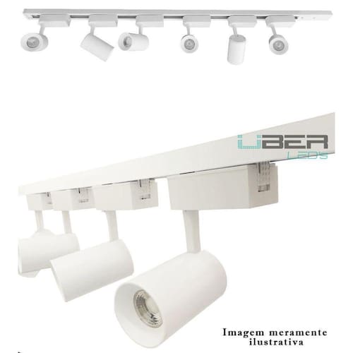 Trilho EletrificadoInformações técnicas:Dimensões: 3,5cm x 2cm x 1mCor: BrancoBarramento duplo de cobreRebaixo para passagem do fio por trásSpot 7WInformações técnicas:Potência: 7WCor: BrancoTensão: 110-220V Bivolt Medidas: 48mm x 68mm x 116mmCor da luz: 3000K Branco Quente Fluxo Luminoso: 450lmÂngulo de iluminação: 30º1 ano de Garantia