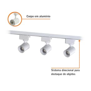 Cada spot entrega luminosidade equilibrada, perfeita para destacar objetos decorativos, quadros, nichos, paredes ou criar uma iluminação geral suave e bem distribuída. O trilho de 1 metro permite reposicionar os spots livremente ao longo de toda a extensão, garantindo total flexibilidade no direcionamento da luz, sem necessidade de alterações no ponto elétrico.