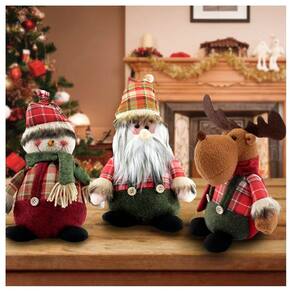 Kit Trio Bonecos de Natal Boneco De Neve Papai Noel Rena Xadrez 22cm -