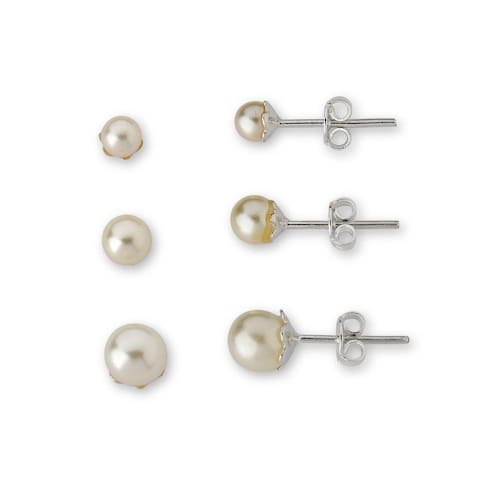 Kit Trio Brincos Perola Sintética Prata 925 -