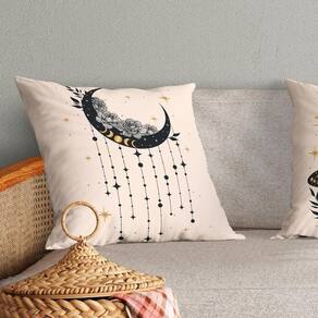 Kit Trio Capas De Almofadas Estampadas Fases Da Lua Em Veludo Suede 45cm X 45cm - Decoração Luxo Para Sala Cor Bege