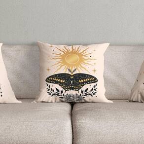 Kit Trio De Almofadas Cheias Fases Da Lua Estampadas Em Veludo Suede 45cm X 45cm Enchimento Em Refil Silicone Cor Bege