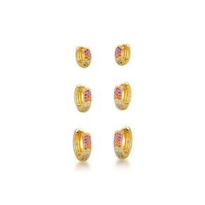 Kit Trio de Brincos Argolas coloridas Banhadas a Ouro 18k -