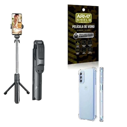 OBS: Imagens ilustrativas, não acompanha smartphone, Tripé e Bastão de selfie em um único produto.
