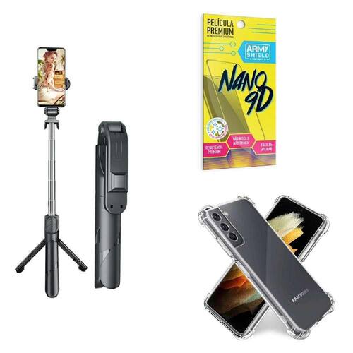 Ele possui pernas retráteis ajustáveis em diferentes alturas. Chegando a 69cm quando aberto totalmente, e uma cabeça giratória que possibilita o ajuste do ângulo da câmera para obter o melhor enquadramento. O controle remoto sem fio, que pode ser conectado via Bluetooth, permite que você registre de longe, sem precisar tocar na câmera ou no celular.