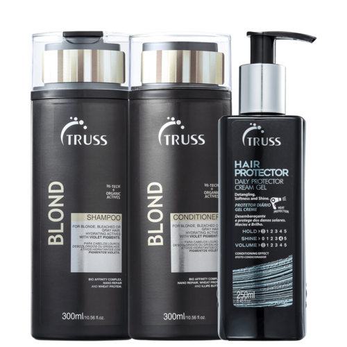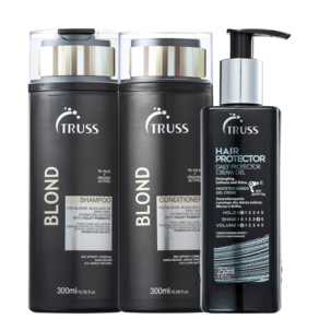O Kit TRUSS Blond Hair Protector apresenta um trio poderoso que neutraliza o amarelado indesejado, fortalece os fios e proporciona hidratação, maciez e brilho intenso. Sua fórmula exclusiva com pigmentos violetas reaviva a cor, enquanto seus agentes hidratantes e reparadores deixam os cabelos mais saudáveis e resistentes.