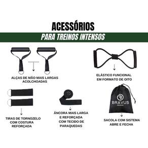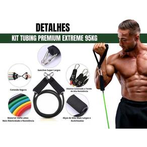 Kit Tubing PREMIUM EXTREME Elástico Extensor Carga Máxima 12 Peças Bravus Sport Kit Tubing Premium Extreme - Carga Máxima 95 kg Acabamento Super Reforçado e Elásticos 100% Látex Natural Qualidade PremiumO Kit Tubing Premium Extreme Bravus Sport foi feito para os usuários mais exigentes e que buscam um produto de alta resistência para superar todos os limites e levar seu treino para outro nível. Combine 5 elásticos de diferentes resistências e crie diversos níveis de carga de acordo ao seu perfil de treino O elástico tubing antipressão é feito de material de qualidade premium, 100% látex natural, o que gera uma resistência dupla. Os mosquetões de aço resistente e as tiras firmemente costuradas também evitam o rasgo, mesmo sob a extrema resistência ao estiramento. O Kit Premium Extreme vem com 5 elásticos de borracha em forma de tubo duplamente reforçados, feitos de látex 100% Natural. Cada elástico tem 1,20 m de comprimento com garras em metal de alto calibre e que permitem um treino muito mais potente. O kit Inclui:1 elástico de 4.6 kg de resistência1 elástico de 9.0 kg de resistência1 elástico de 13.6 kg de resistência1 elástico de 27.2kg de resistência1 elástico de 40.8 kg de resistência2 alças de mão acolchoadas 2 tiras para tornozelo1 âncora para colocar na porta1 sacola de transporte Elástico Extensor Super 8Uma ferramenta de exercício físico versátil, o Elástico Extensor Super 8 é excelente para exercitar a parte superior e inferior do corpo e pode ser aplicado na yoga, pilates, levantamento de peso e até fisioterapia. Sua resistência permite isolar grupos musculares e trabalhar todo o corpo. Transforme seu corpo com exercícios de braço único e duplo super eficazes para o condicionamento total do corpo. O Elástico extensor 8 oferece resistência ao músculo e fornece os resultados que você procura.