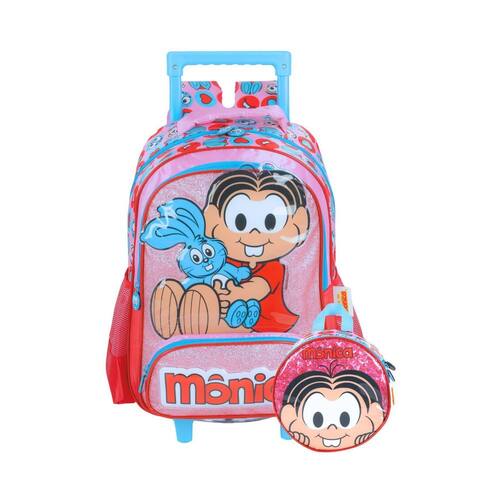 Kit escolar turma da monica mochila de rodinha + lancheira térmica mochila de rodinha: Confeccionada em poliéster Fechamento em zíper Puxadores personalizados Compartimentos espaçosos 2 bolsos laterais para garrafa Possui rodas e alças de costas reguláveis e alça de mão Design exclusivo Medidas aproximadas: Altura: 45 cm Largura: 15 cm Comprimento: 30 cm